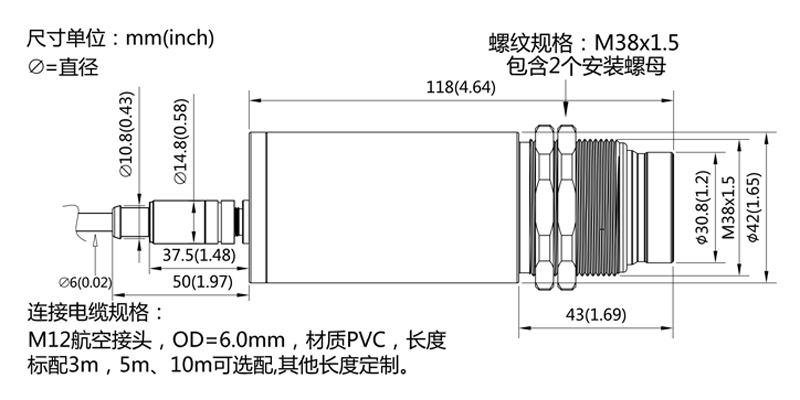 3m(标准),5m、10m(可选) |